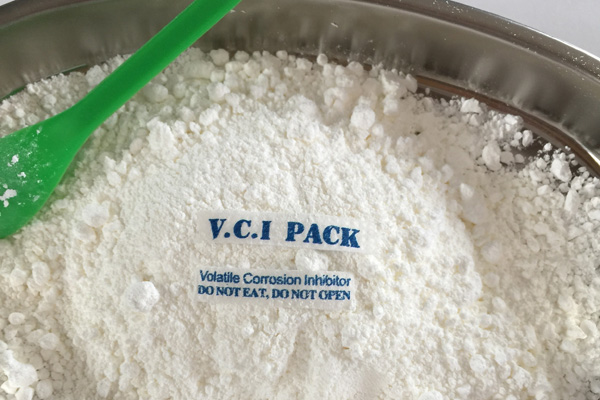氣相防銹粉末多種特制的氣相緩蝕劑原料按一定配比均勻混合加工而成,具有水溶性,是一種新型的氣化性防銹材料。在密閉空間內,VCI經氣化揮發(fā)到金屬的每個角落,吸附在金屬表面形成致密保護膜層從而起到防銹的作用